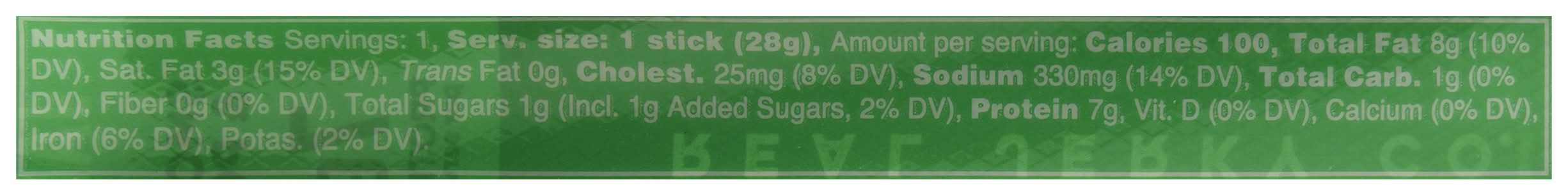 Ingredients: Pork, Beef, Sea Salt, Dextrose, Spices (Including Ground and Whole Mustard Seed), Encapsulated Citric Acid, Dehydrated Jalapeno, Cultured Celery Juice Powder (Celery Powder, Sea Salt), Jalapeno Powder, Dehydrated Garlic, Black Pepper, Cherry Juice Powder, Colored Beef Collagen Casing