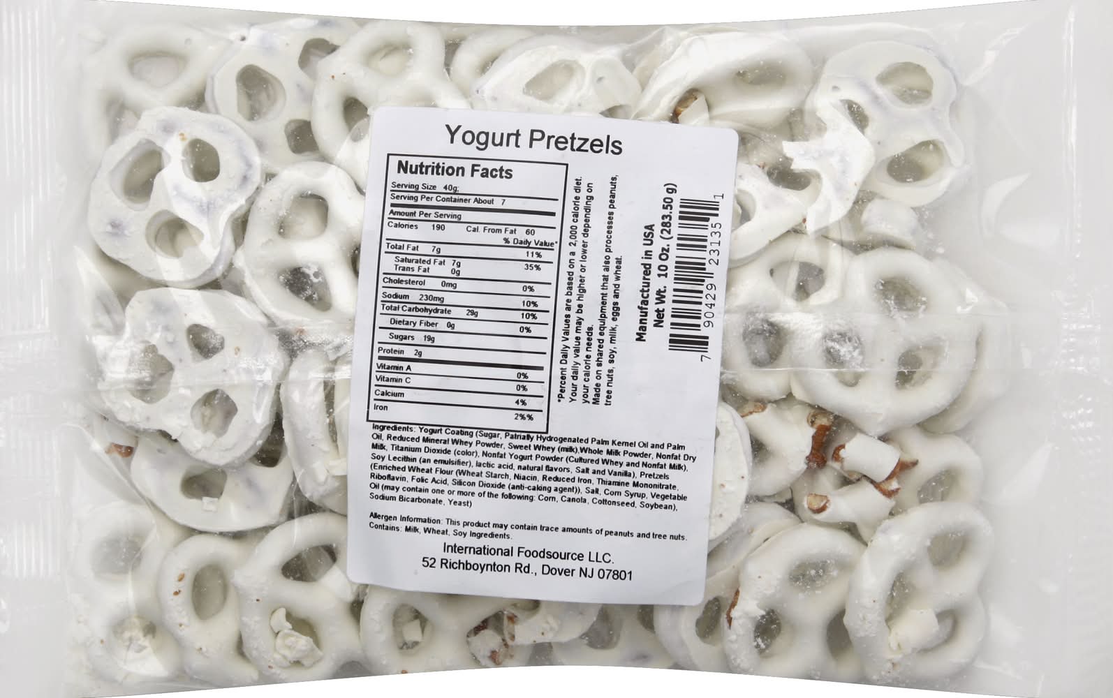 Yogurt Pretzels International Foodsource, 52 Richboynton Rd. Dover, NJ 07801