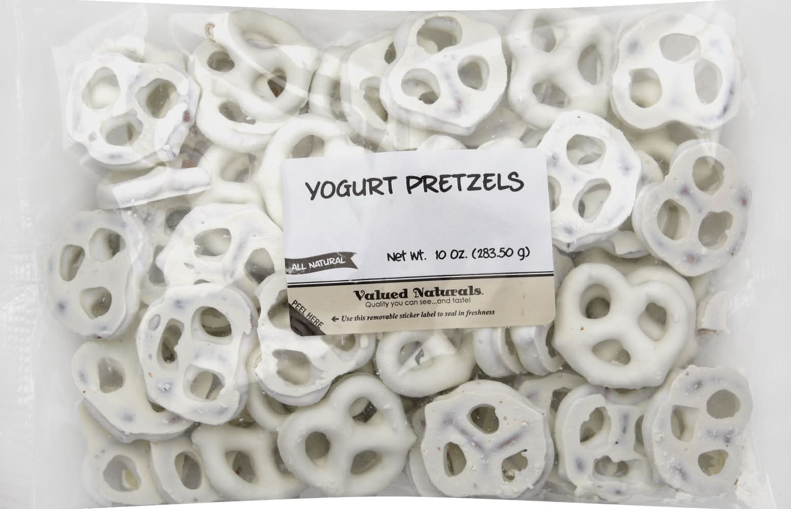 Ingredients: Yogurt Coating Sugar, Partially Hydrogenated Palm Kernel Oil and Palm Oil, Reduced Mineral Whey Powder, Sweet Whey Milk, Whole Milk Powder, Nonfat Dry Milk, Titanium Dioxide Color, Nonfat Yogurt Powder Cultured Whey and Nonfat Milk, Soy Lecithin an Emulsifier, Lactic Acid, Natural Flavors, Salt and Vanilla, Pretzels Enriched Wheat Flour Wheat Starch, Niacin, Reduced Iron, Thiamine Mononitrate, Riboflavin, Folic Acid, Silicon Dioxide Anti-Caking Agent, Salt, Corn Syrup, Vegetable Oil May Contain One or More of the Following: Corn, Canola, Cottonseed, Soybean, Sodium Bicarbonate, Yeast. Contains: Milk, Soybeans, Wheat, Eggs, Peanuts, Tree Nuts