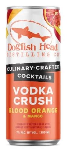 Enjoy a unique blend of flavors with Dogfish Head Culinary-Crafted Cocktails Blood Orange & Mango Vodka Crush. Distilled vodka infused with blood oranges and mango forms the heart of this beverage, complemented by a topping of orange and mango juice along with a hint of citrus. This ready-to-drink cocktail offers a juicy burst of flavor, light and refreshing on the palate. It is an excellent companion to dishes such as blackened chicken or fish. Alcohol by volume: 7%