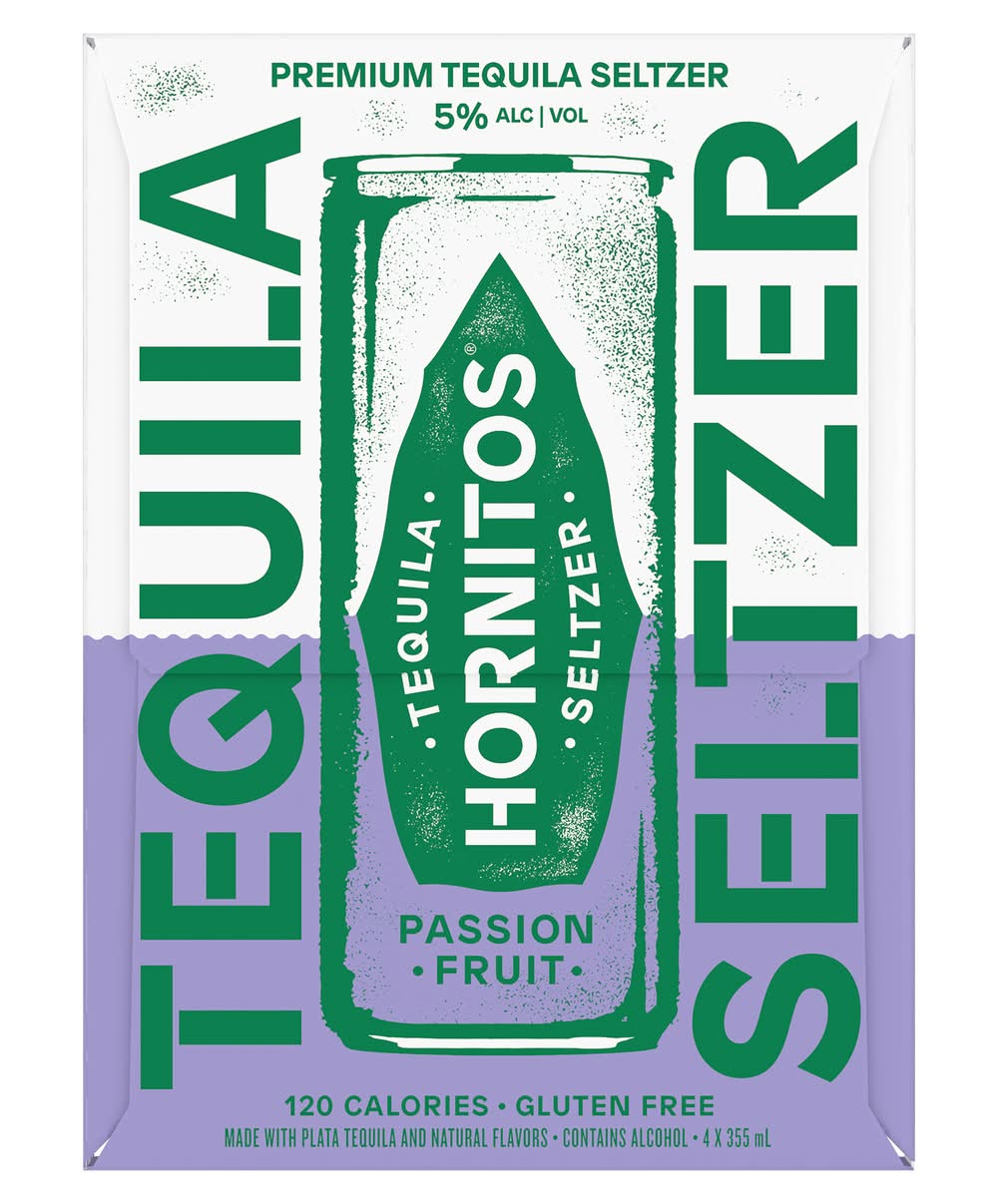 In 1950, Hornitos was founded upon a spirit of innovation, believing nothing great happens without taking a risk. That same spirit drives us today, with our newest offering, Hornitos Tequila Seltzer. Hornitos has a legacy of groundbreakers and innovators who defy tradition. That's why we combined the fresh, bold, and authentic flavor of Plata Tequila with refreshing seltzer and multiple flavors to choose from. The perfect choice for those seeking a ready-made cocktail. We'll raise a can to that, SALUD! • Pack size: 4 • Alcohol by volume: 5% • Packaging: Reusable
