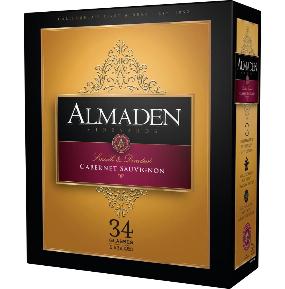A satisfying dry red wine with cherry aromas and plum flavors. A smooth, medium-bodied wine with a satisfying finish. • Brand: Almaden • Category: Cabernet sauvignon • Alcohol by volume: 13.6% • Almaden, Ripon, CA