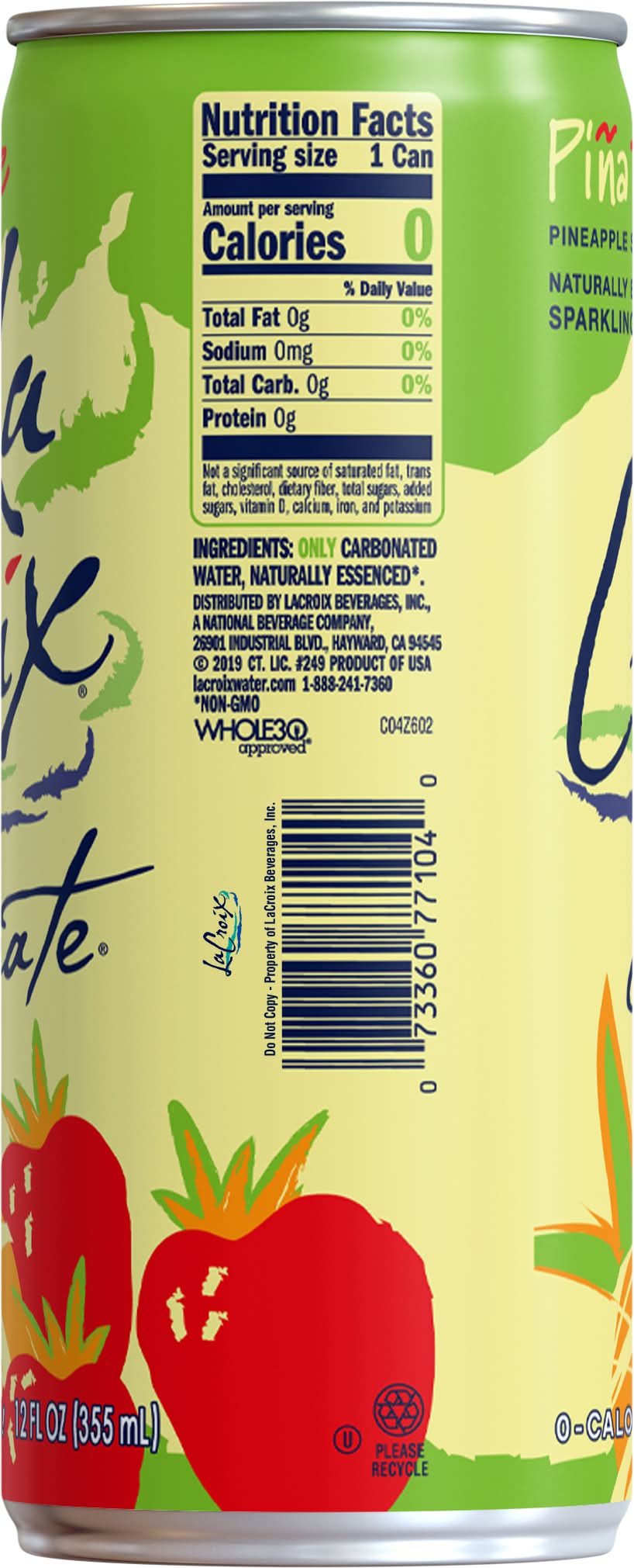 Ingredients: Only Carbonated Water, Naturally Essenced (Non-GMO)