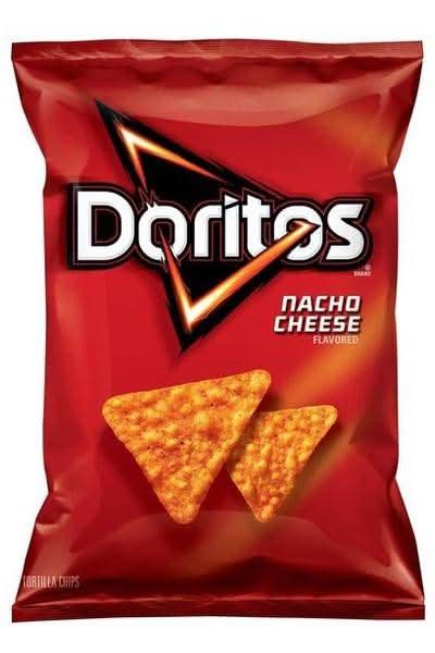 Doritos Nacho Cheese Flavored Tortilla Chips offer a bold cheesy flavor in each crunchy bite. Ideal for snacking, these tortilla chips can enhance family gatherings, game viewings, or add a zesty component to various recipes. Flavor: Nacho cheese