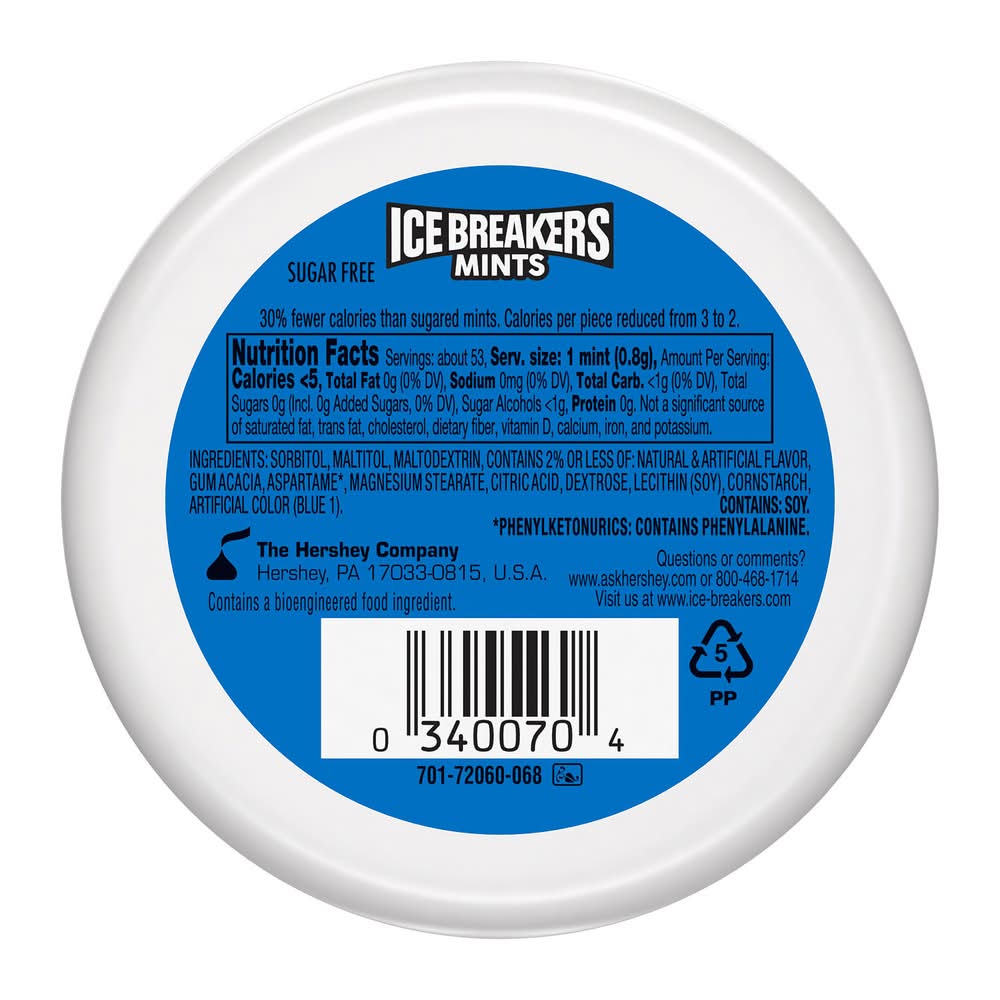Goodbye bad breath, hello confident smile! Maintain fresh breath accompanied by a minty refreshing feeling with ICE BREAKERS cool mint flavored sugar free mints. These sugar free breath mints are packed with cooling mint flavor crystals and placed in a convenient tin, so you can keep your taste buds busy, no matter where the day takes you. Enjoy a crisp, smooth flavor with zero added sugar whenever you need a burst of freshness. Don't stop there! Keep a container in your desk drawer at the office, the glove compartment in your car and the pantry at home for instant minty refreshment anytime you or your loved ones need it. Feeling generous? It's easy to share this minty treat amongst friends, family and co-workers. Getting ready for a first date? Pop a mint in before the first hello! Need to wake up during long road trips? Get a burst of energy after the first chew. Each compact container of ICE BREAKERS breath mints will stay closed until you're ready, thanks to a handy snap-close lid, which can dispense just one mint if you're flying solo or several at a time if you're in the sharing mood. Just don't forget to save a few mints for yourself! • Flavor: Cool mint • The Hershey Company Hershey,, PA 17033-0815, U.S.A. • Packaging: Reusable