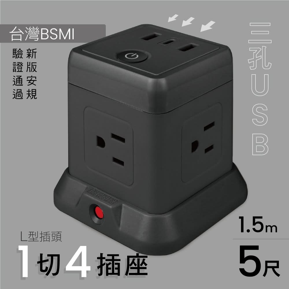 KINYO 3P 1開4插立方USB延長線 - 灰色