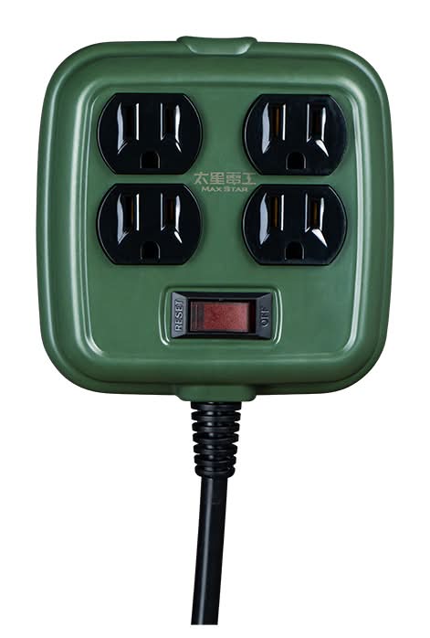 太星電工 一開四插工業風延長線1.8M - 軍綠色 (418 g)