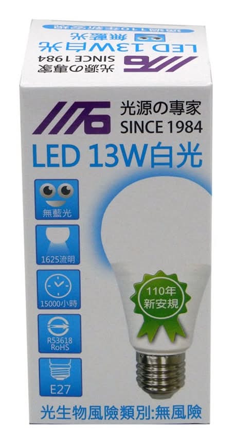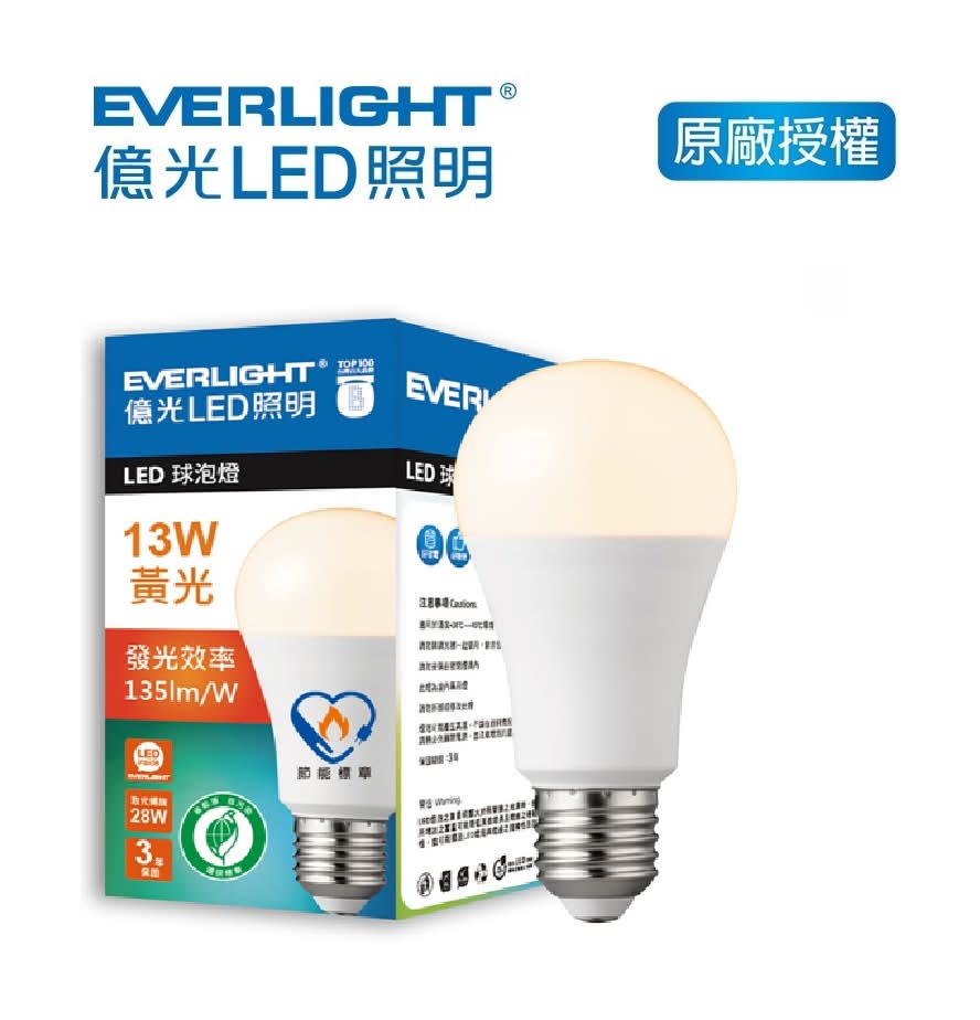 億光 13W高效環保節能LED球泡3000K - 黃光