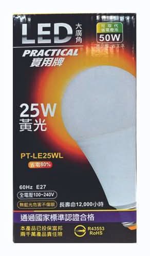 實用牌 25w Led大廣角節能燈泡(全電壓)(黃光)