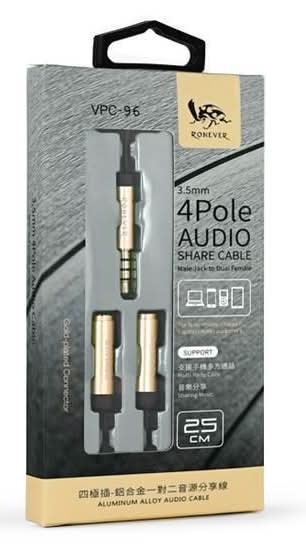 Ronever 鋁合金四極插音源分享線1公對2母(25Cm) (9 g)