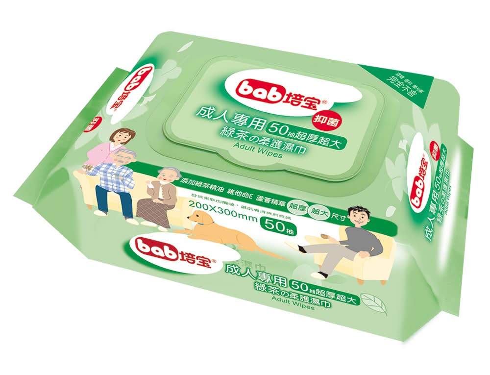 培寶 濕巾成人綠茶護膚柔濕巾超厚 (50 入)