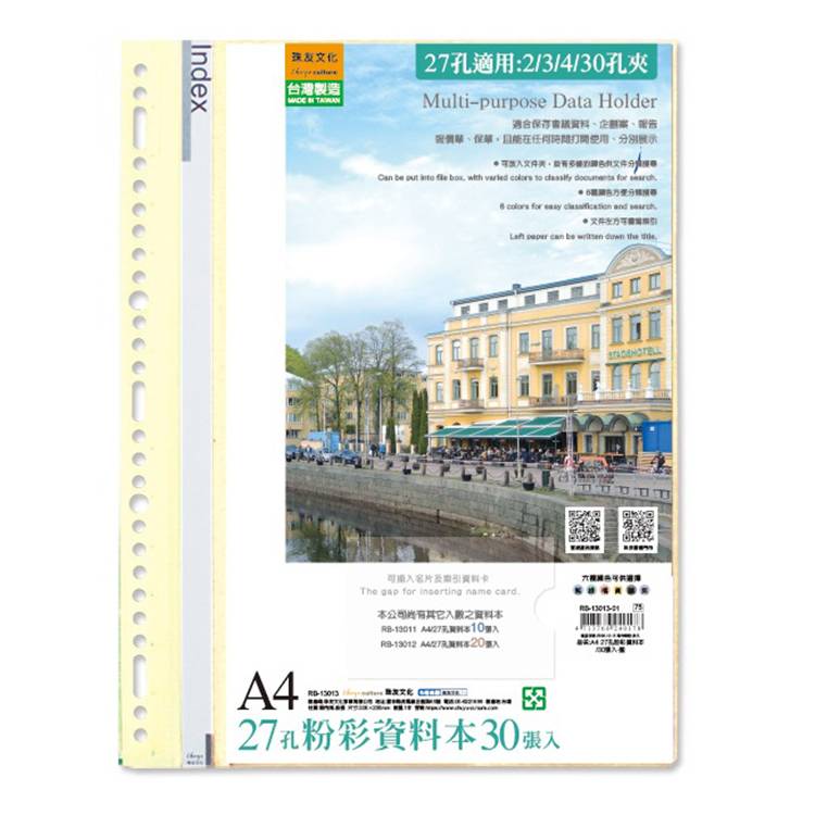 珠友 A4 27孔資料本 - 黃 (30 入)