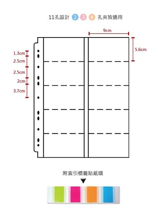 珠友 11孔分段色卡WA-13010 - 13K, 29.4x22.8cm (10 入)