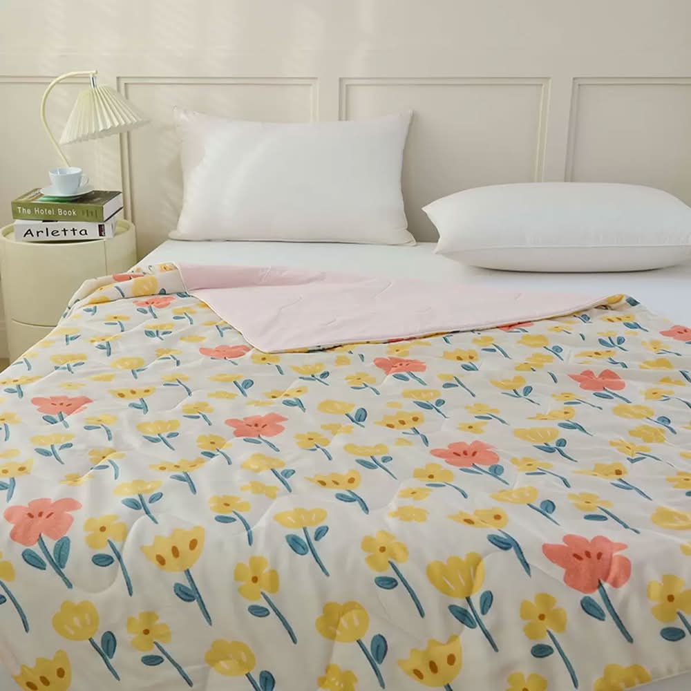 冰絲雪糕被單人印花茶煙裊灰