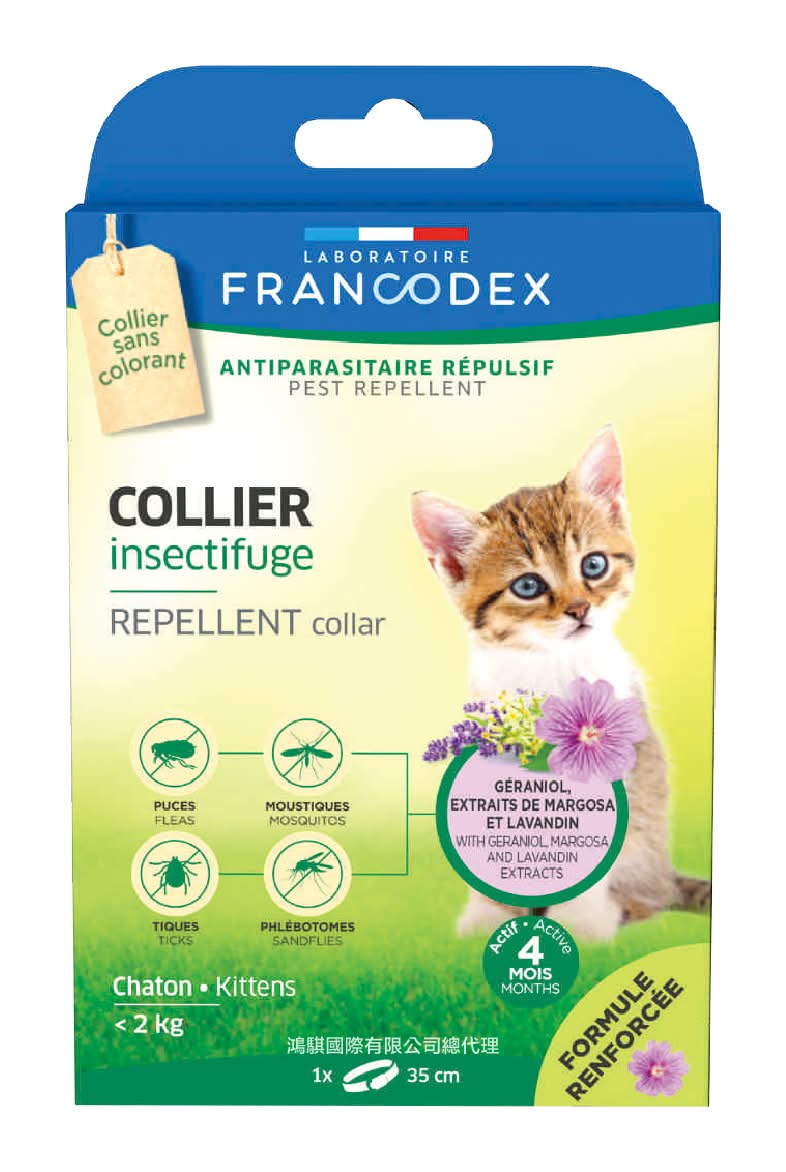 法典Francodex 新綠野防水驅蟲頸圈貓<2Kg (300 g)