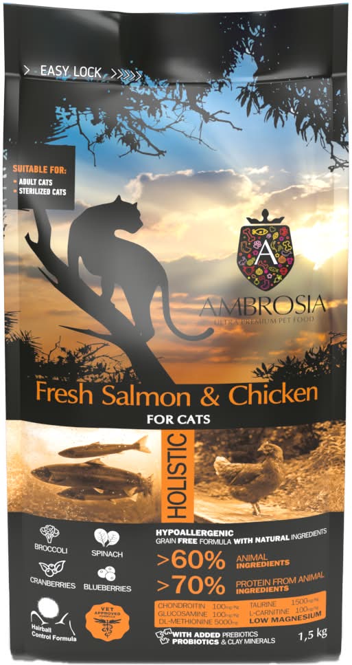 安柏希雅Ambrosia 無穀鮮肉全齡貓糧 - 鮭魚+雞肉 (5 kg)