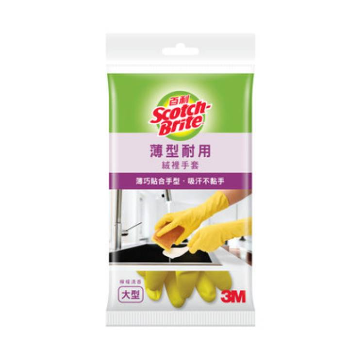 3M百利 薄型耐用絨裡手套 - 檸檬清香, 大型