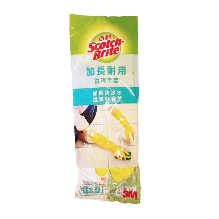 3M百利 加長耐用絨裡手套 - 檸檬清香, 大型, 黃色 (96 g)