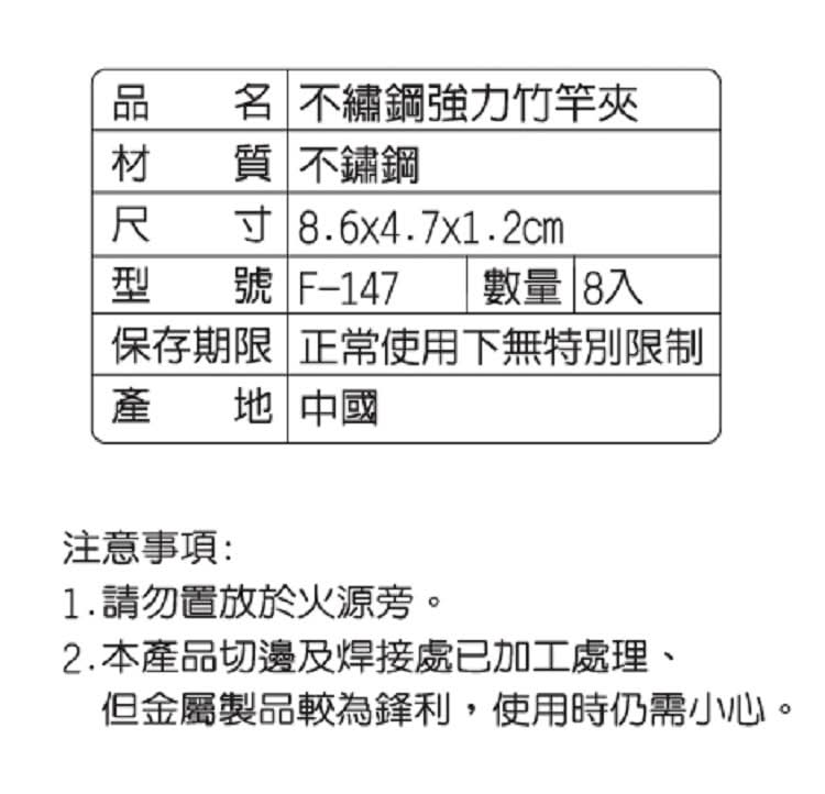 橘之屋 不鏽鋼強力竹竿夾 (8 入)