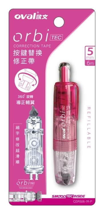 Oval歐文 按鍵式修正帶Qsr506 - 5mmx6m, 粉紅 (32 g)