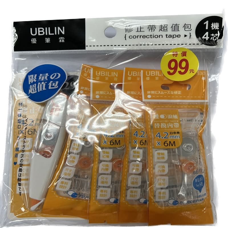 優筆霖 雙滾軸修正帶超值包 - 4.2mmx6m