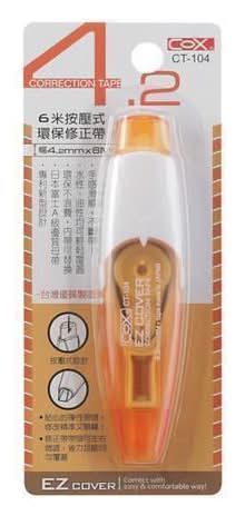 COX三燕 橘色按壓式環保修正帶Ct-104 - 4.2mmx6m
