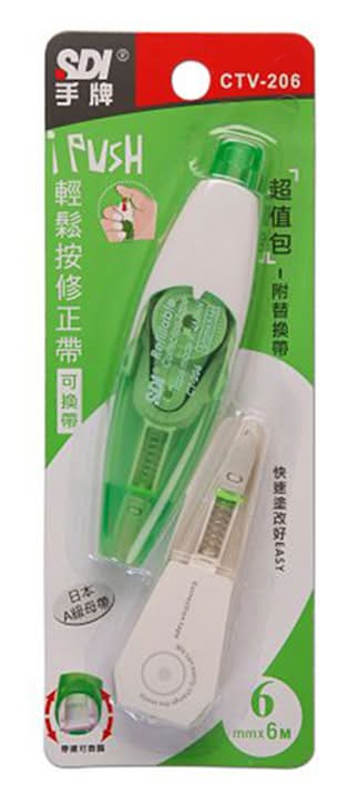 SDI手牌 Ipush輕鬆按修正帶附替換內帶Ctv-206 - 6mmx6m, 綠