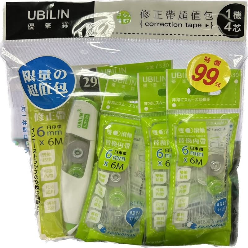 優筆霖 雙滾軸修正帶1+4超值包 - 6mmx6m