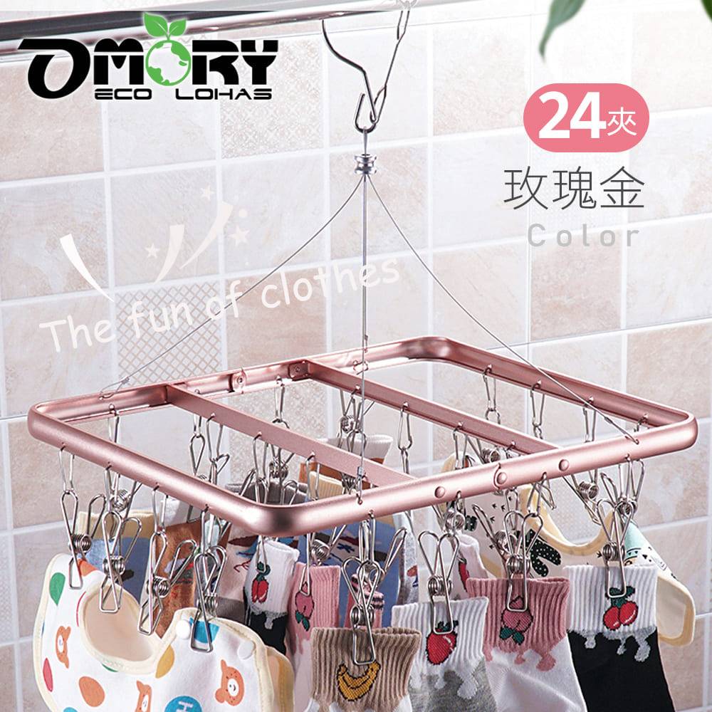 OMORY 鋁合金曬衣架24夾 - 玫瑰金 (350 g)