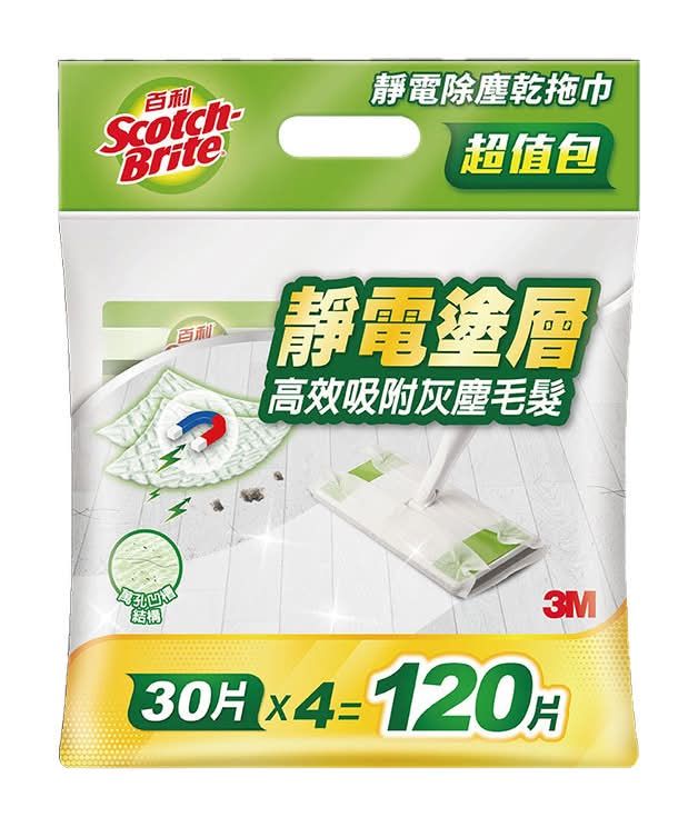 3M百 利 靜電除塵乾拖巾超值包 (30 入 x 4)