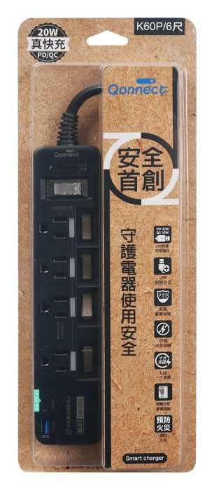 Qonnect 4開3插3P高溫斷電延長線6尺C-59