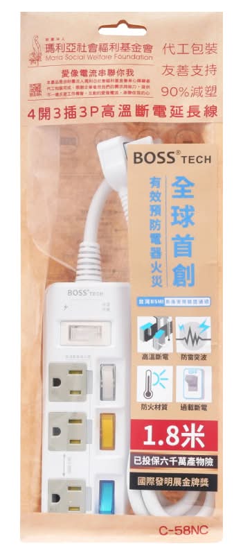 BOSS 4開3插3P高溫斷電延長線C-58NC - 1.8米