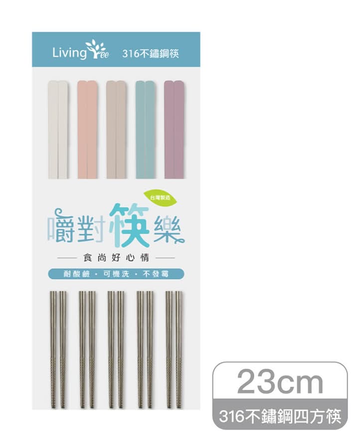 LivingTree 嚼對筷樂316不鏽鋼筷沉靜嚼色 (5 入)