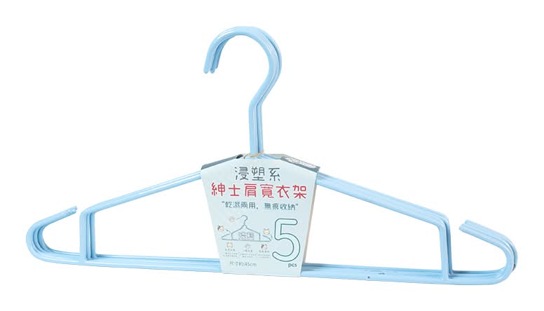 浸塑紳士寬肩衣架淺藍45Cm (5 入)