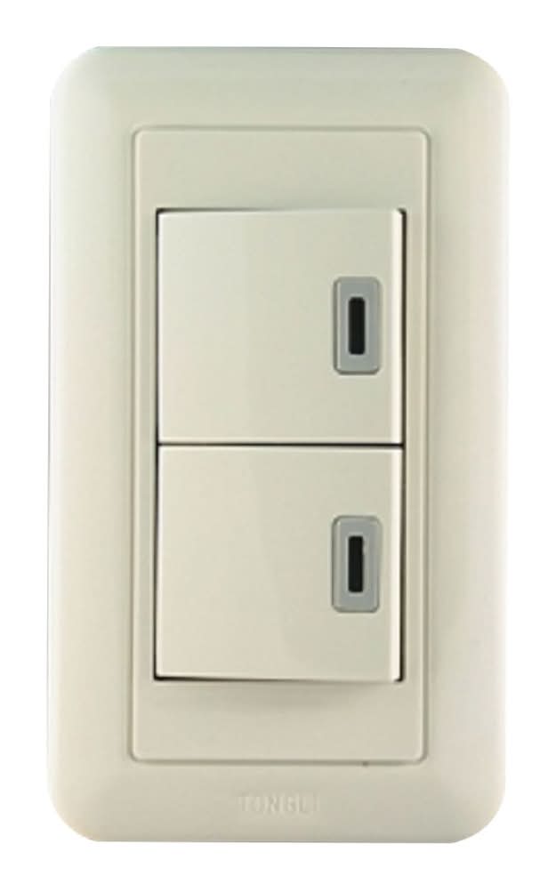 朝日電工 大型夜光雙開關組 - 120x70mm, 雅白