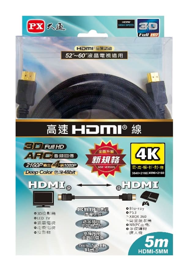 大通 Hdmi高畫質影音線 - 5米, 黑 (580 g)