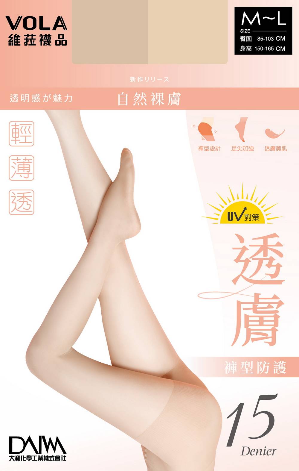 VOLA維菈 涼感腰下透膚絲襪S6942f - M-L, 膚色
