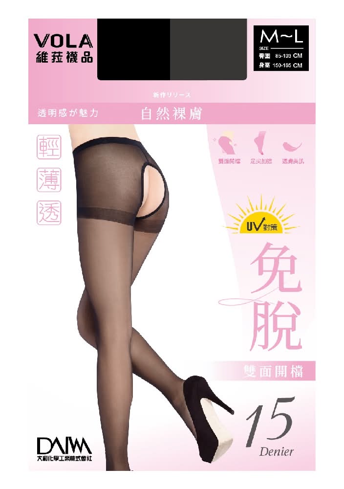 VOLA維菈 免脫開檔透膚絲襪 S6944b - M-L, 黑