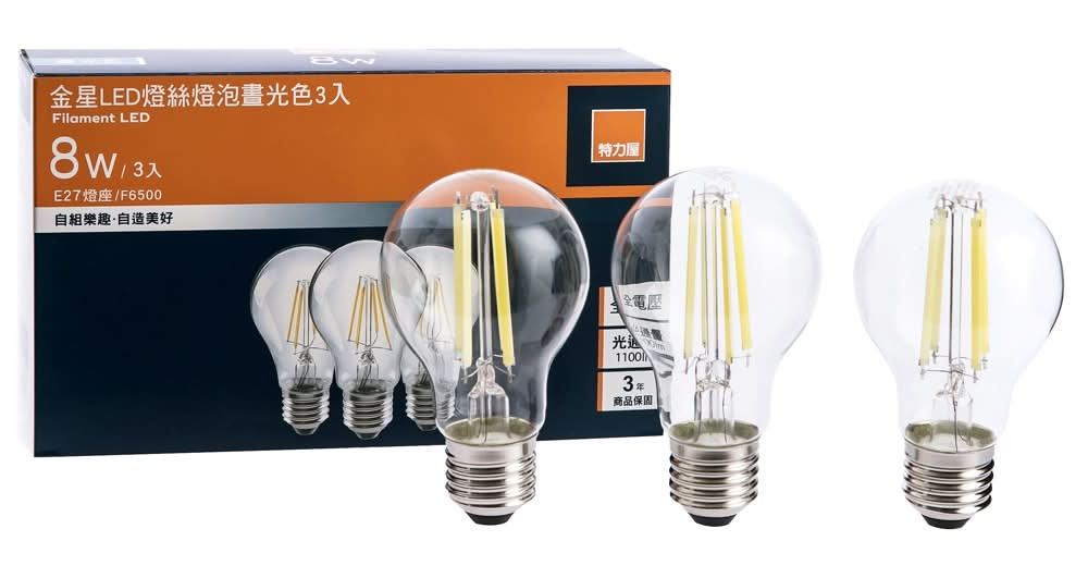 特力屋 金星Led燈絲燈泡8W - 晝光色 (3 入)