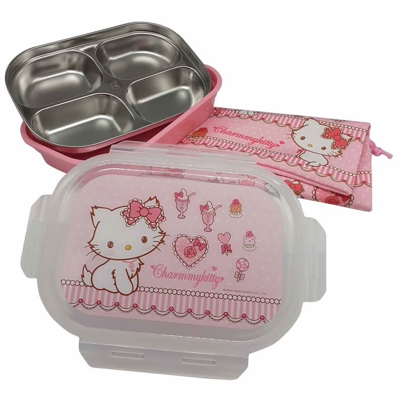 三麗鷗 304不鏽鋼附蓋便當盒Hello Kitty
