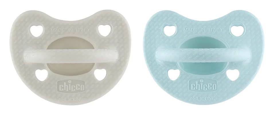 Chicco Luxe矽膠拇指型安撫奶嘴 - 迷霧灰&湖水綠 (2 入)