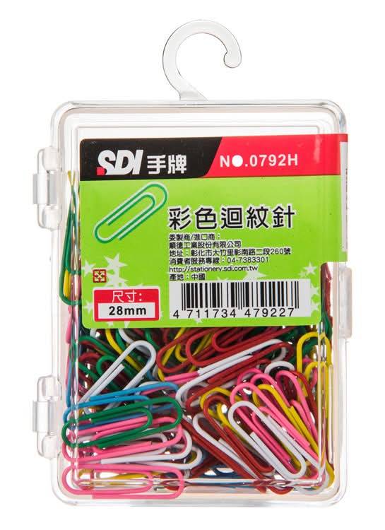 SDI手牌 彩色迴紋針0792E - 28mm (500 入)