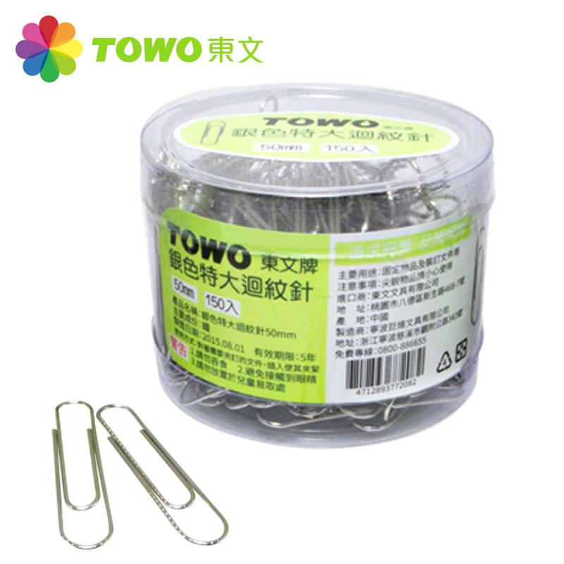 東文 銀色特大迴紋針 - 50mm (150 入)