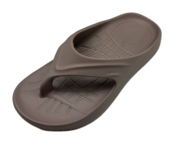 厚舒緩寬版夾腳室外拖鞋 - 咖啡色