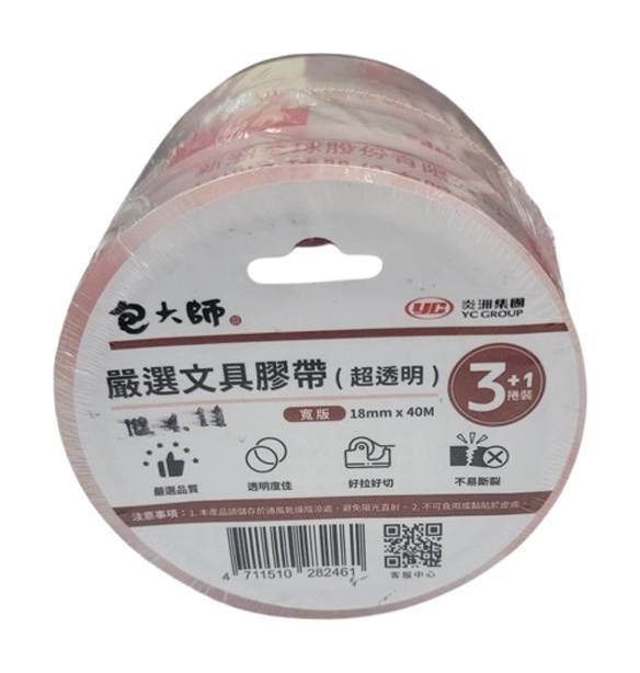 包大師 嚴選寬版超透明文具膠帶 (4 入)