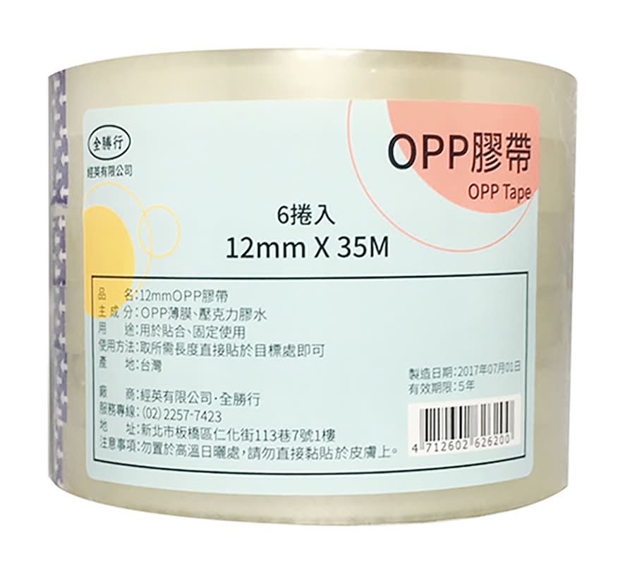 全勝 經英Opp膠帶 - 12mmx35m (6 入)