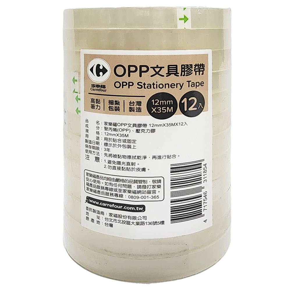 家樂福 Opp文具膠帶 - 12mmx35m (12 入)