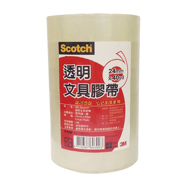 3M思高 24mm超透明膠帶502S (6 入)