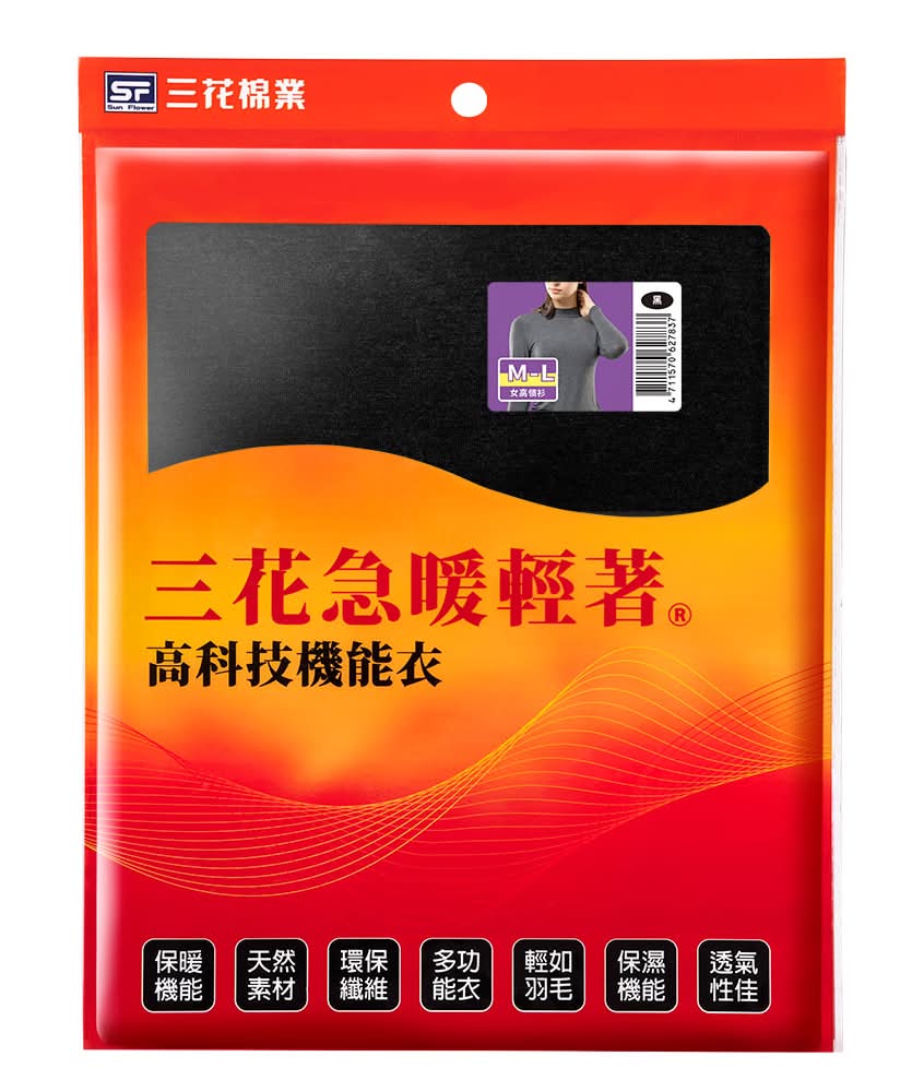 三花 急暖輕著高領衫 - 女性, M-L, 黑色