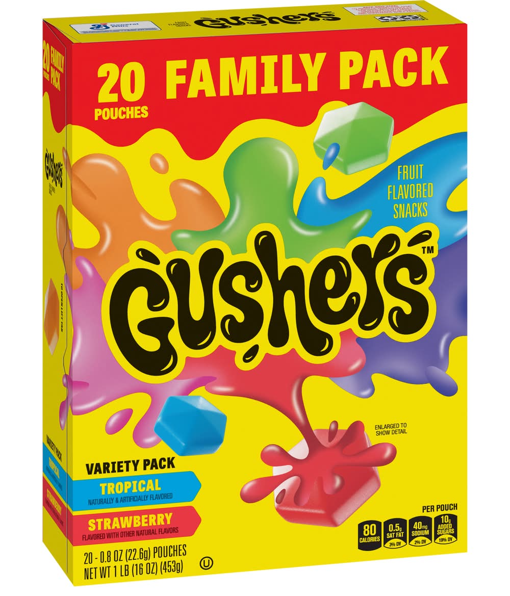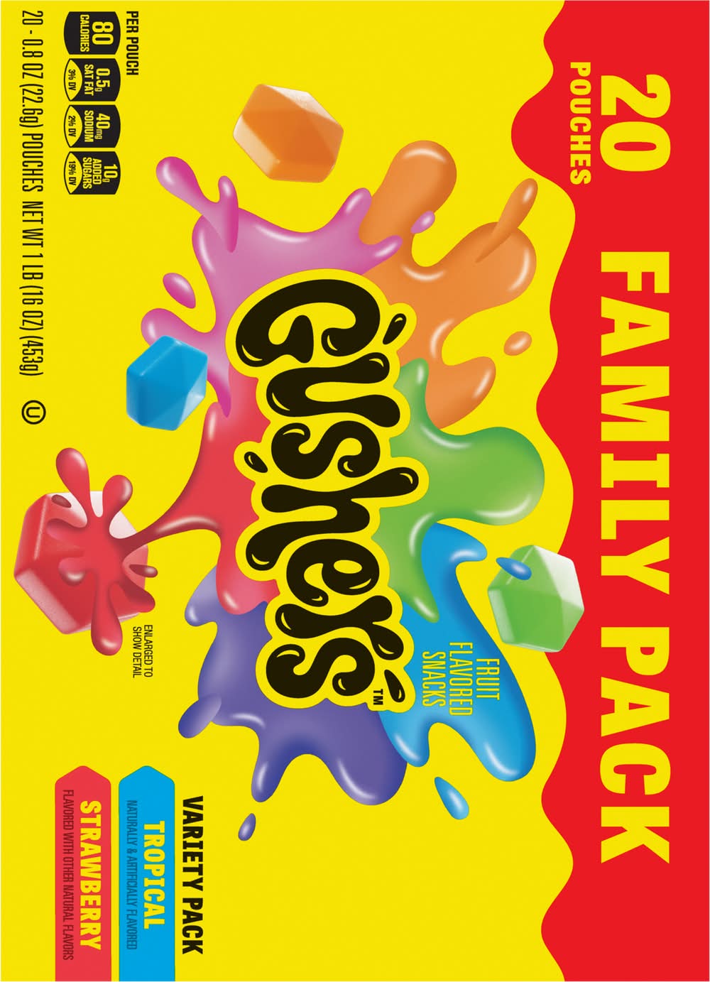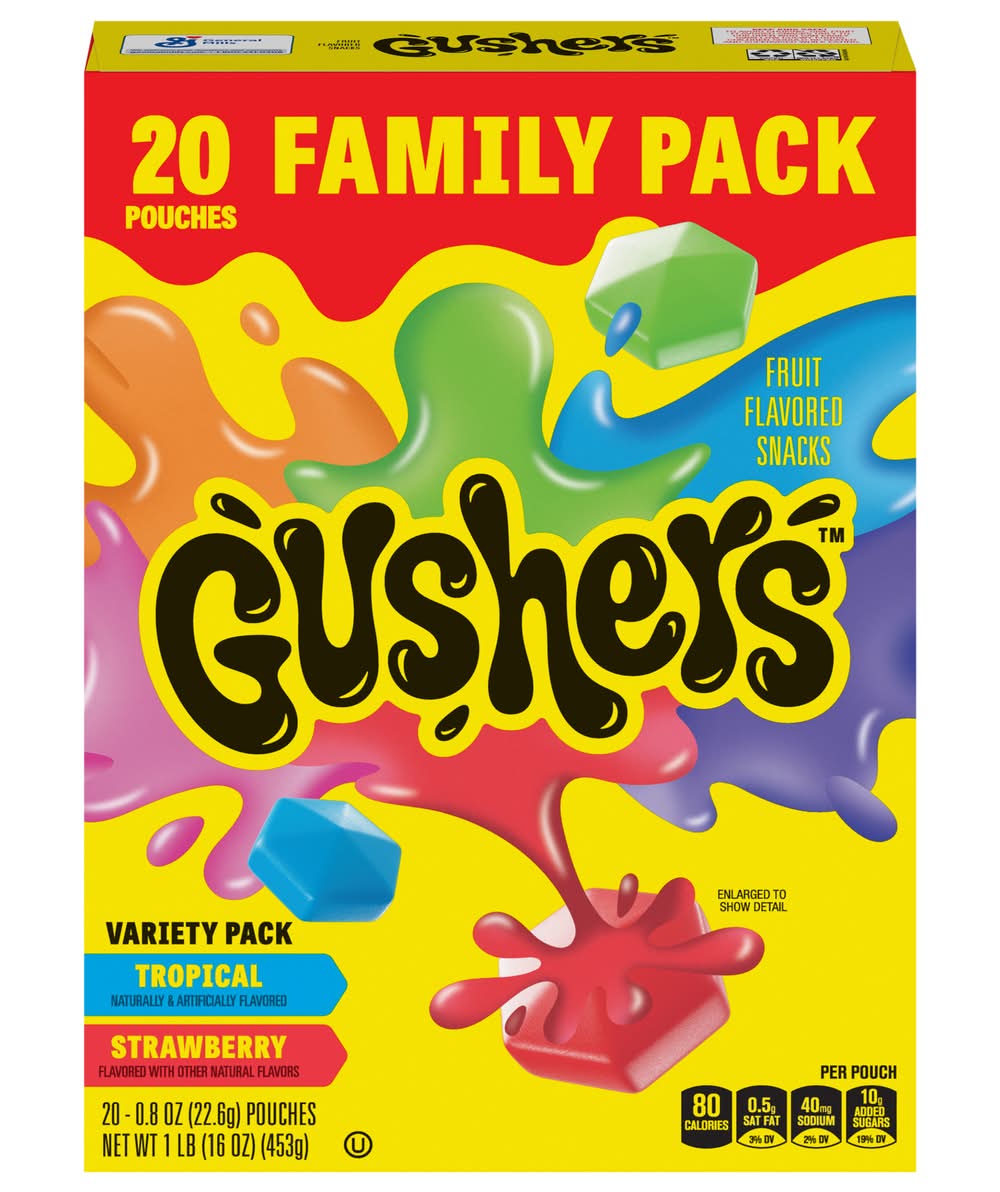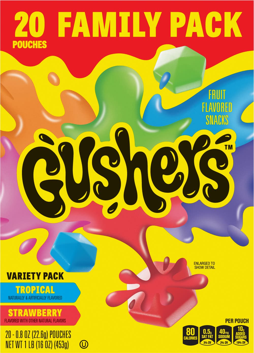 Gushers Fruit Snacks Family pack, Tropical-Strawberry (20 x 0.8 oz)